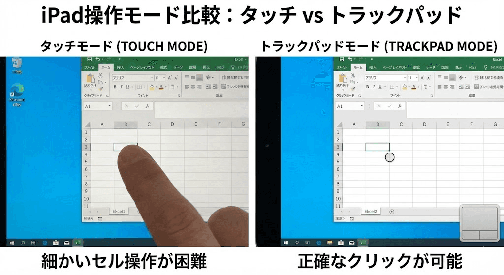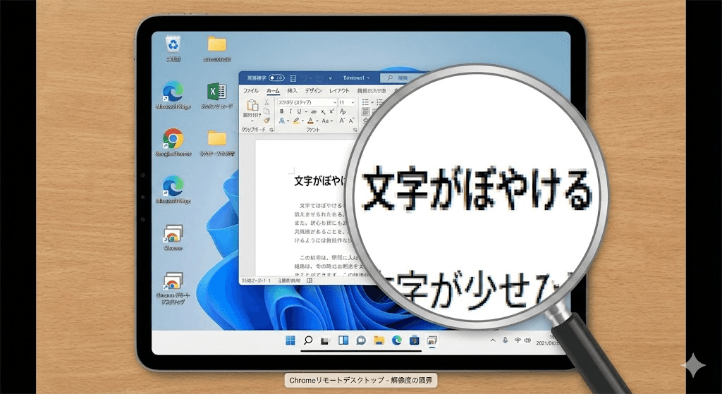 接続が成功すると、iPad上にWindowsデスクトップ全体が表示されます。