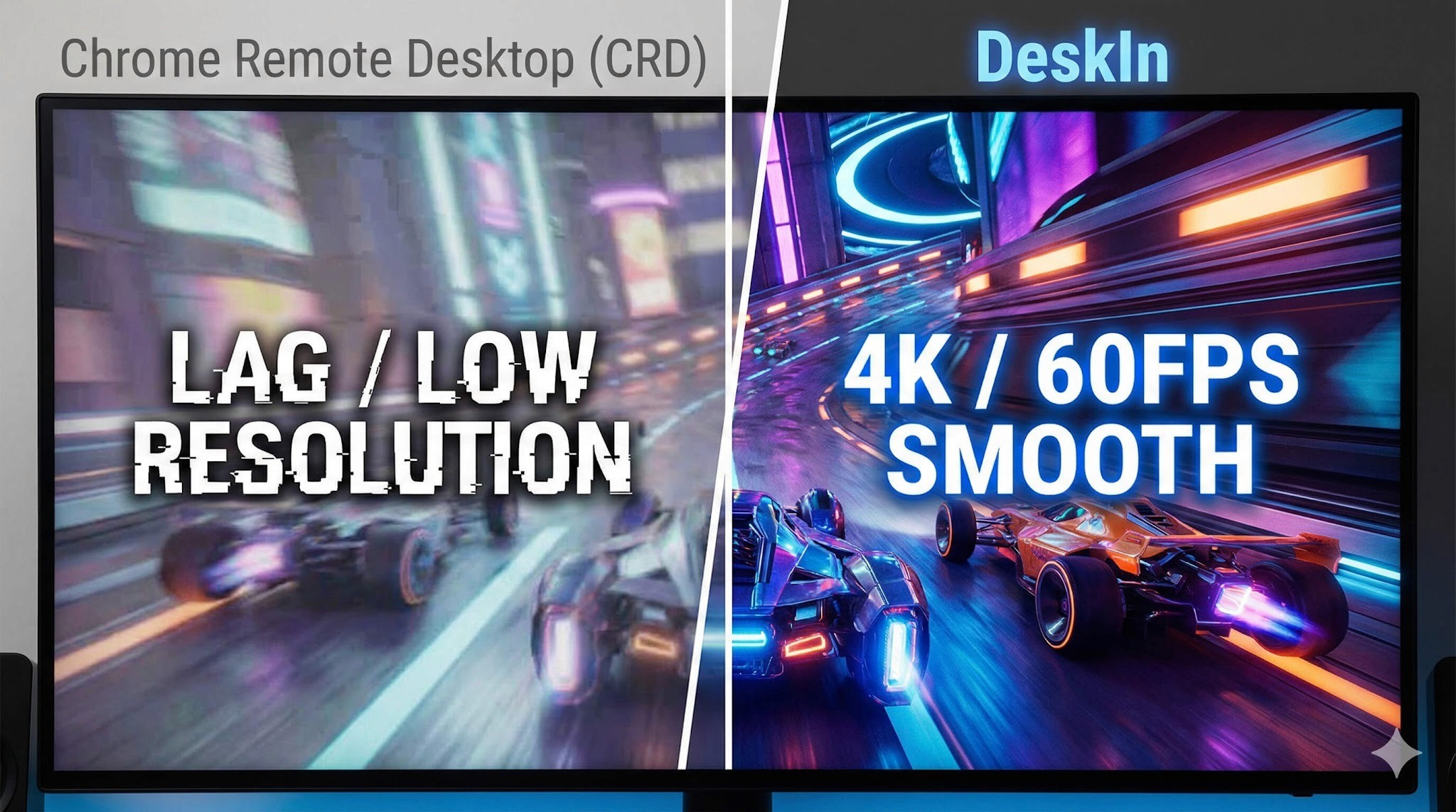 Free options like Chrome Remote Desktop exist, but they lack performance. DeskIn offers a free plan with better performance, making it a stronger choice for real editing work.